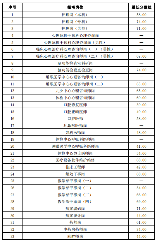 參加筆試的考生請(qǐng)于2021年9月29日起登陸報(bào)名網(wǎng)站(網(wǎng)址:http://m.renesuarez.com)查詢筆試成績(jī),筆試成績(jī)崗位最低分?jǐn)?shù)線如下: