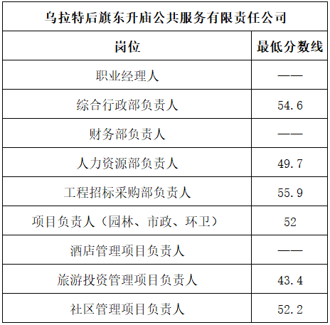 根據(jù)《烏拉特后旗國有企業(yè)工作人員公開招聘公告》工作安排,現(xiàn)就筆試成績、資格復(fù)審及領(lǐng)取面試準(zhǔn)考證有關(guān)事項通知如下: